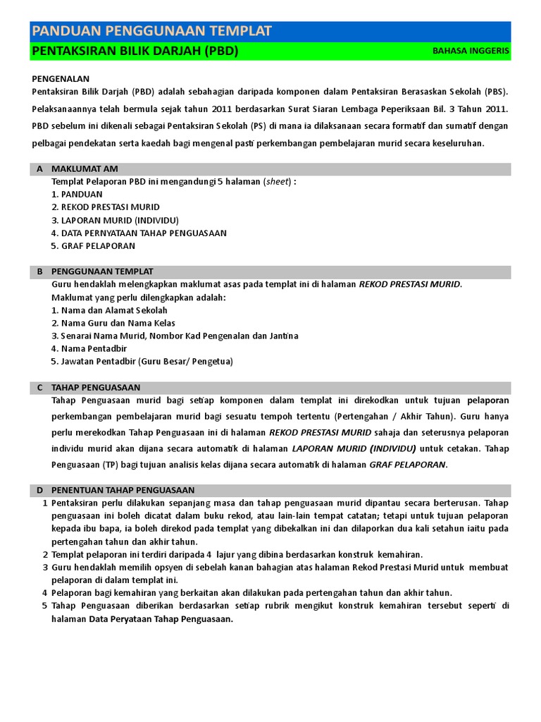 Panduan Penggunaan Templat Pentaksiran Bilik Darjah Pbd