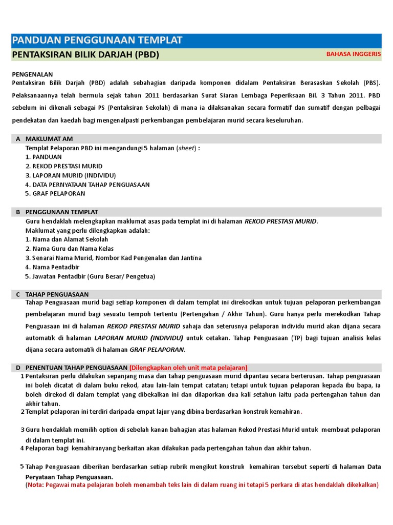 Panduan Pengisian Templat Pelaporan Pentaksiran Bilik Darjah Pbd 2018