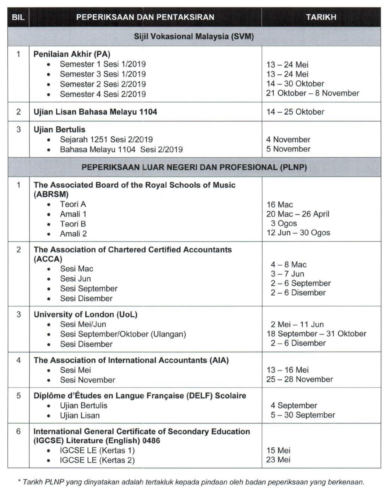 Takwim Peperiksaan Dan Pentaksiran Serta Pengumuman Keputusan Tahun 2019 Layanlah Berita Terkini Tips Berguna Maklumat