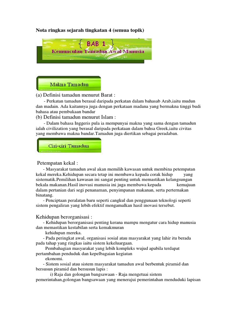 Nota Ringkas Sejarah Tingkatan 4 Pdf Document