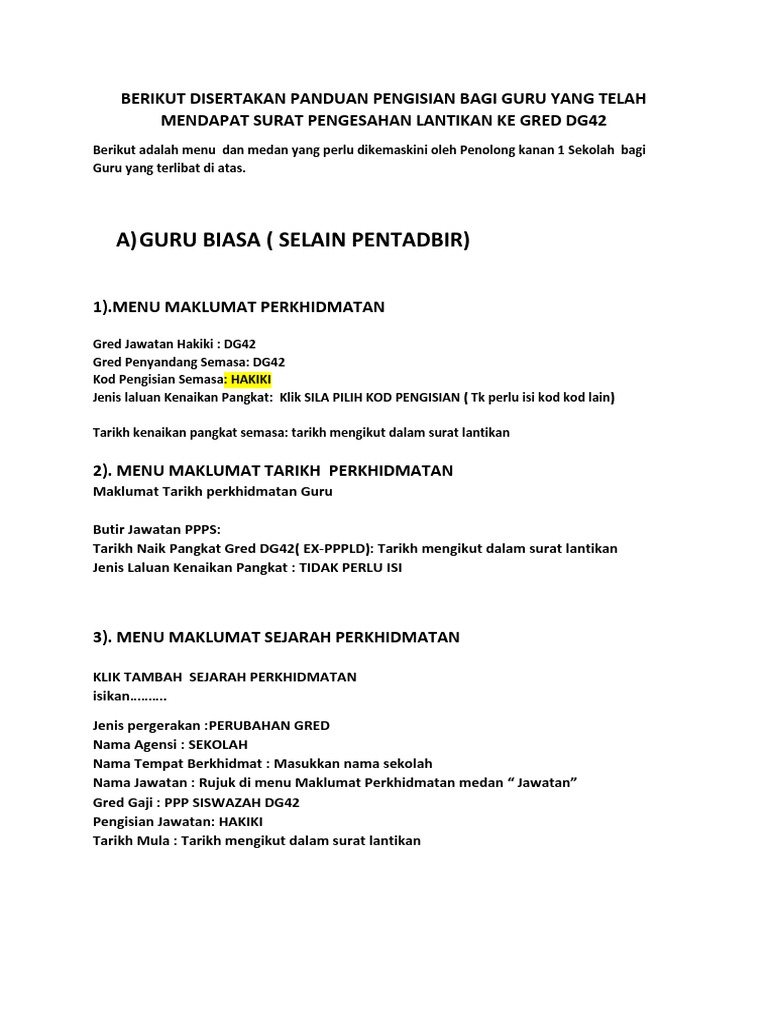 Penetapan gaji permulaan kenaikanpangkat telah ditambah baikmengikut kaedah baharu iaitu. Jadual gaji gred dg41 dg54 mengikut pekeliling perkhidmatan bil. Berikut ialah gred gaji penjawat awam perkhidmatanpendidikan. Pendidikan kumpulan perkhidmatan.