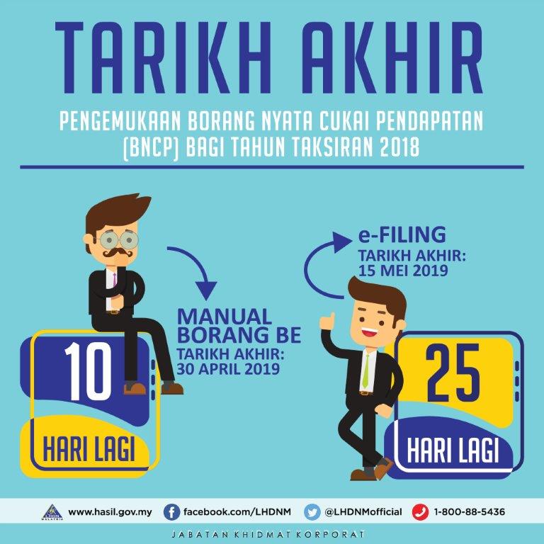 Tarikh Akhir Hantar Borang Cukai E Filing Bncp Be 2018 Individu Blog Informasi
