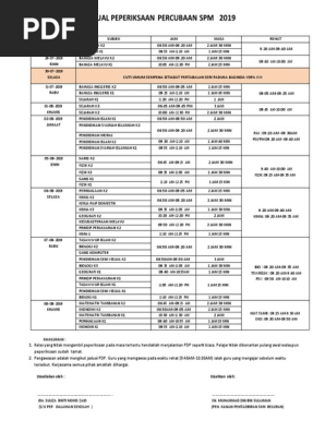 Tarikh Percubaan Spm 2019
