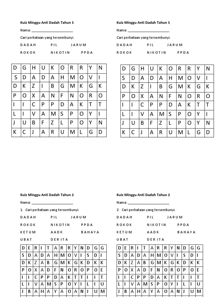Contoh Soalan Kuiz Anti Dadah Sekolah Menengah Gong Syima