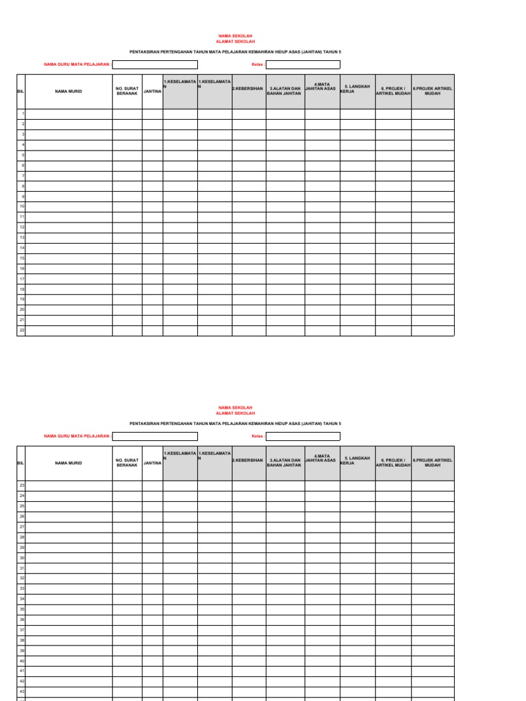 Koleksi Terkini Templat Pelaporan Pbd Kssr Tahun 5 Bumi Gemilang