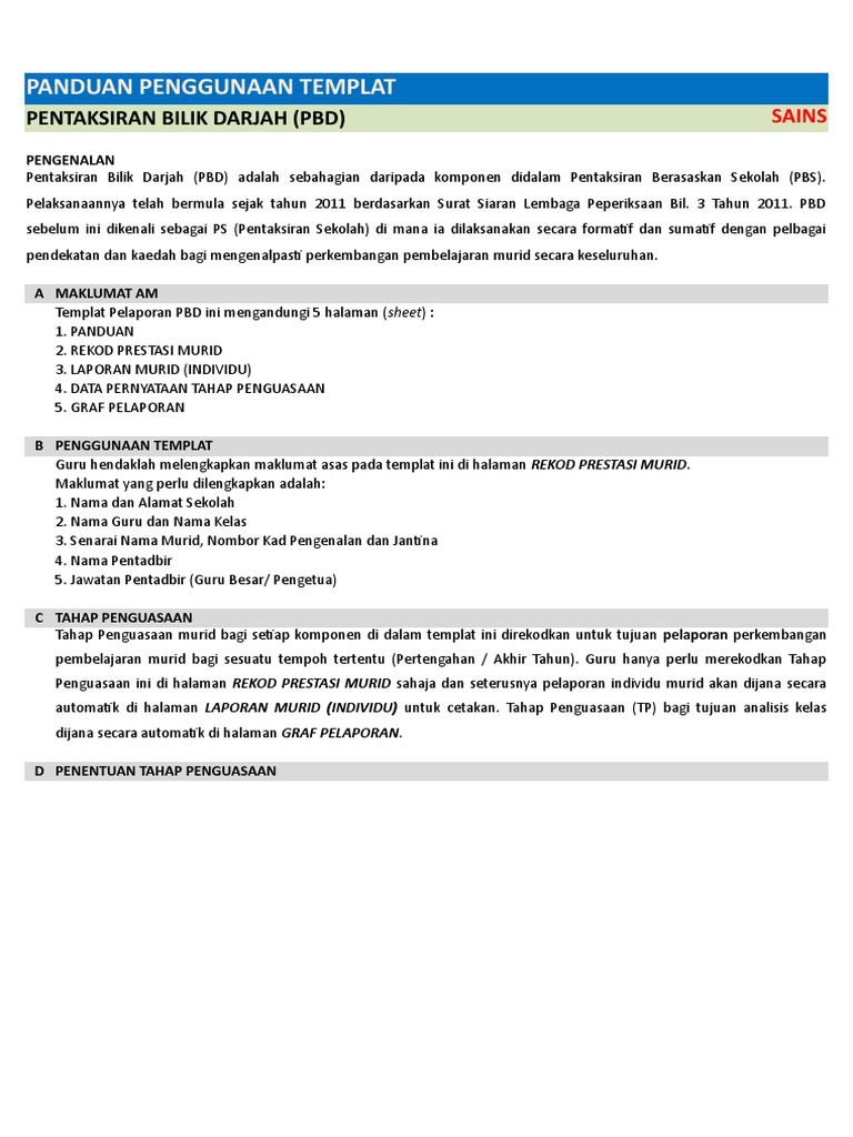 Templat Pelaporan Pentaksiran Bilik Darjah Pbd Versi 3 0 Baru Pendidik2u