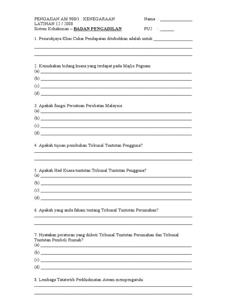 Pengajian Am 900 Latihan 12 Badan Pengadilan