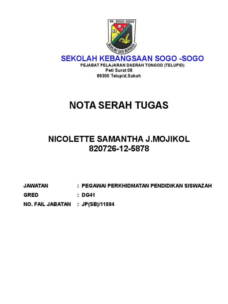 Nota Serah Tugas Nicolette Samantha J Mojikol 820726 12 5878