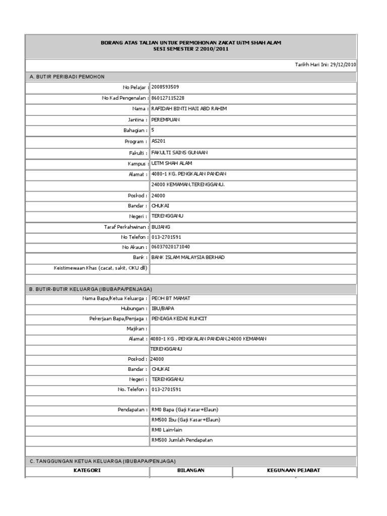 Borang Jubah Uitm Sai Authentication Document