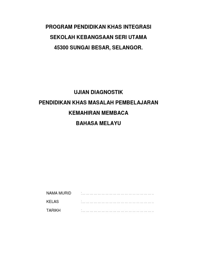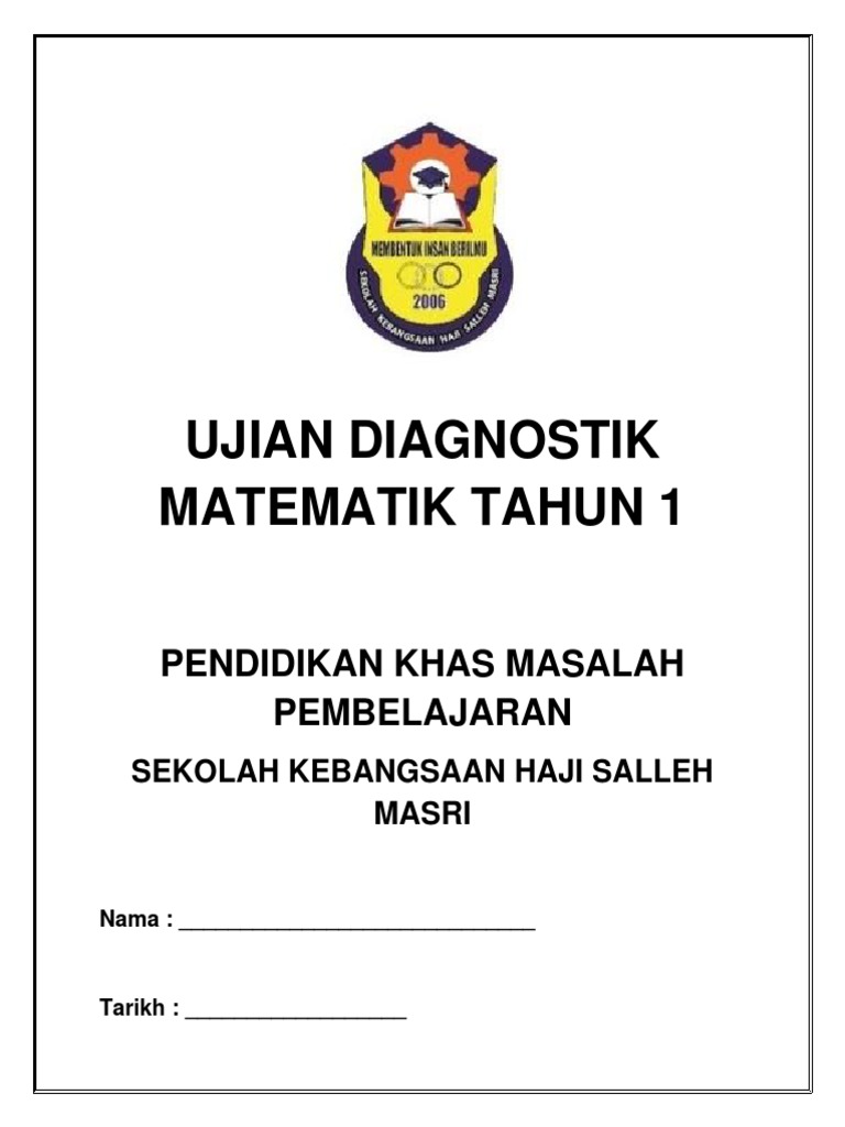 Ujian Diagnostik Matematik Tahun 1 Pendidikan Khas Pdf Document