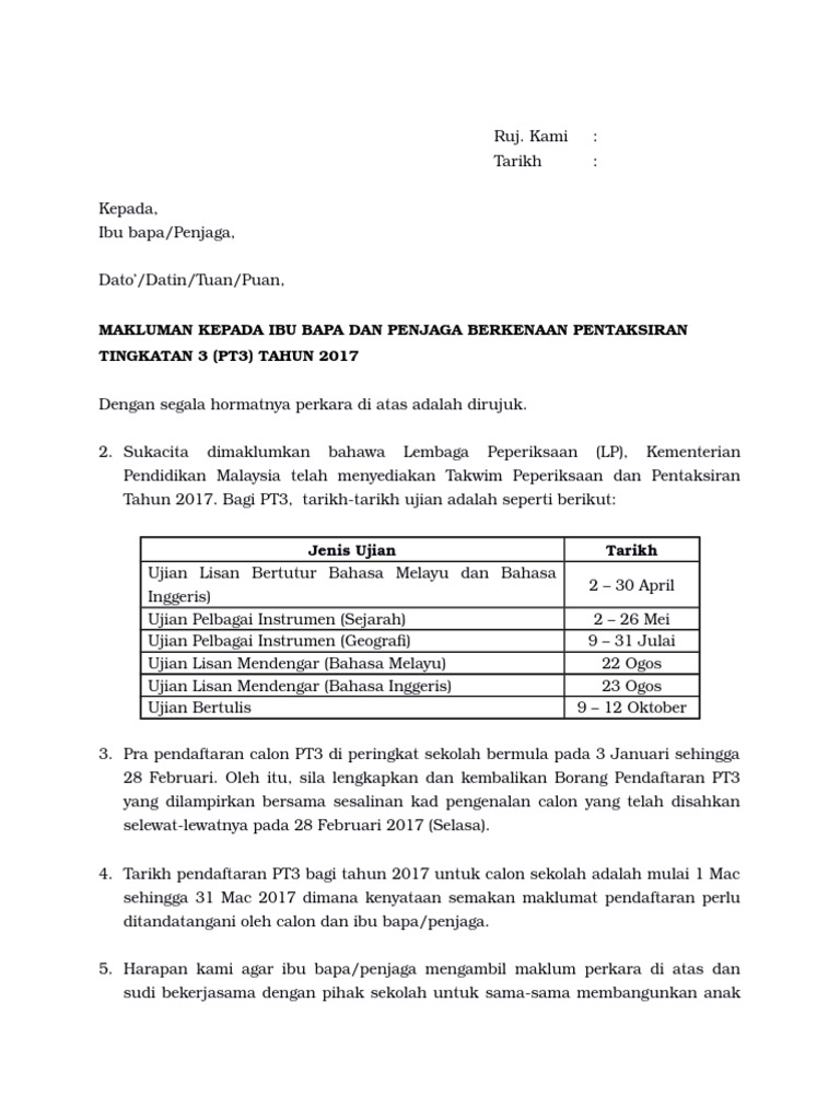 Surat Siaran Keberadaan Pelajar Tingkatan 3 Semasa Pentaksiran Pt3 2017 Sekolah Menengah Sains Kubang Pasu