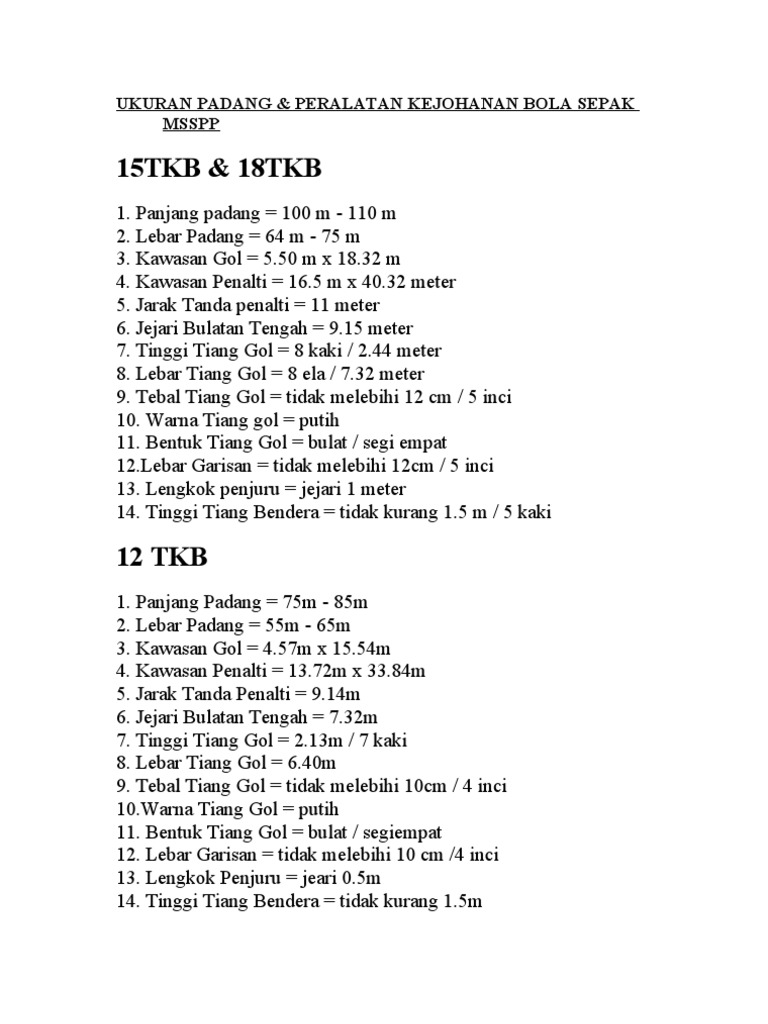 Dimensi Standard Padang Bola Sepak 314167 Info