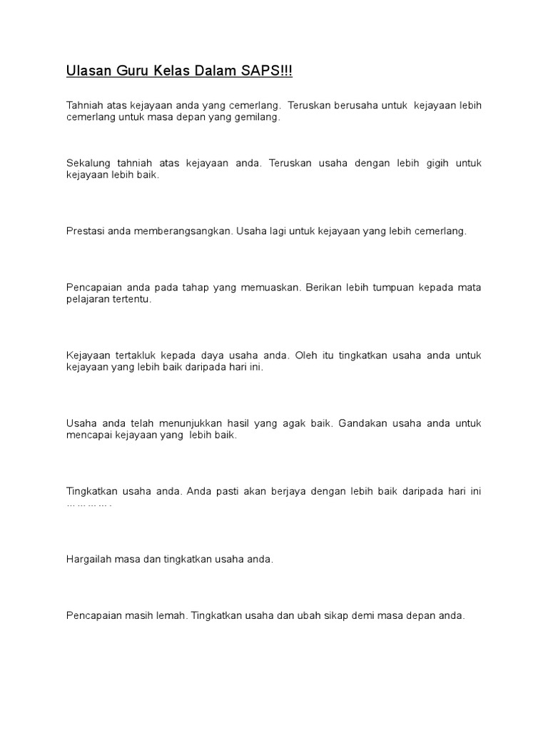 Contoh Ulasan Guru Kelas Dalam Saps Dan Buku Pelaporan