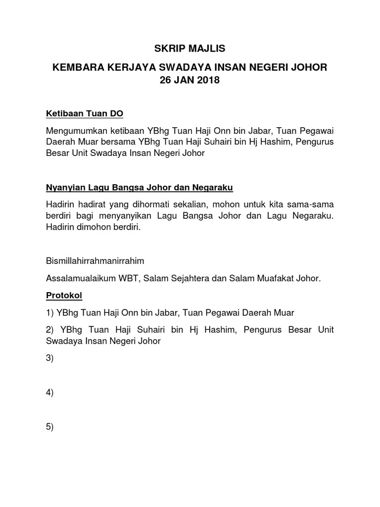 Skrip Majlis Kembara Kerjaya Swadaya Insan Negeri Johor 26 Jan 2018