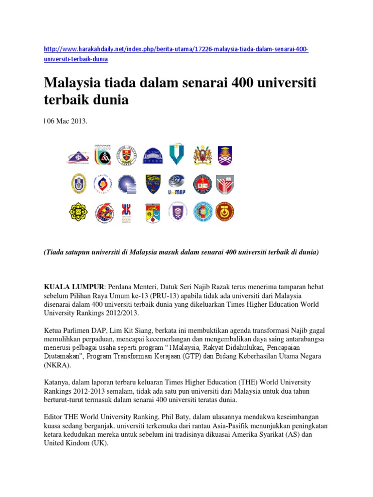 Senarai 8 Universiti Malaysia Dalam Ranking Universiti Terbaik Dunia 2018 Iluminasi