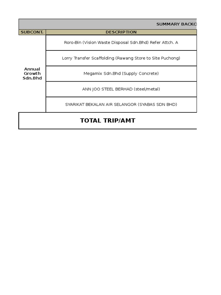 Total Trip Amt Roro Bin Vision Waste Disposal Sdn Bhd Refer Attch A Building Engineering Building Materials