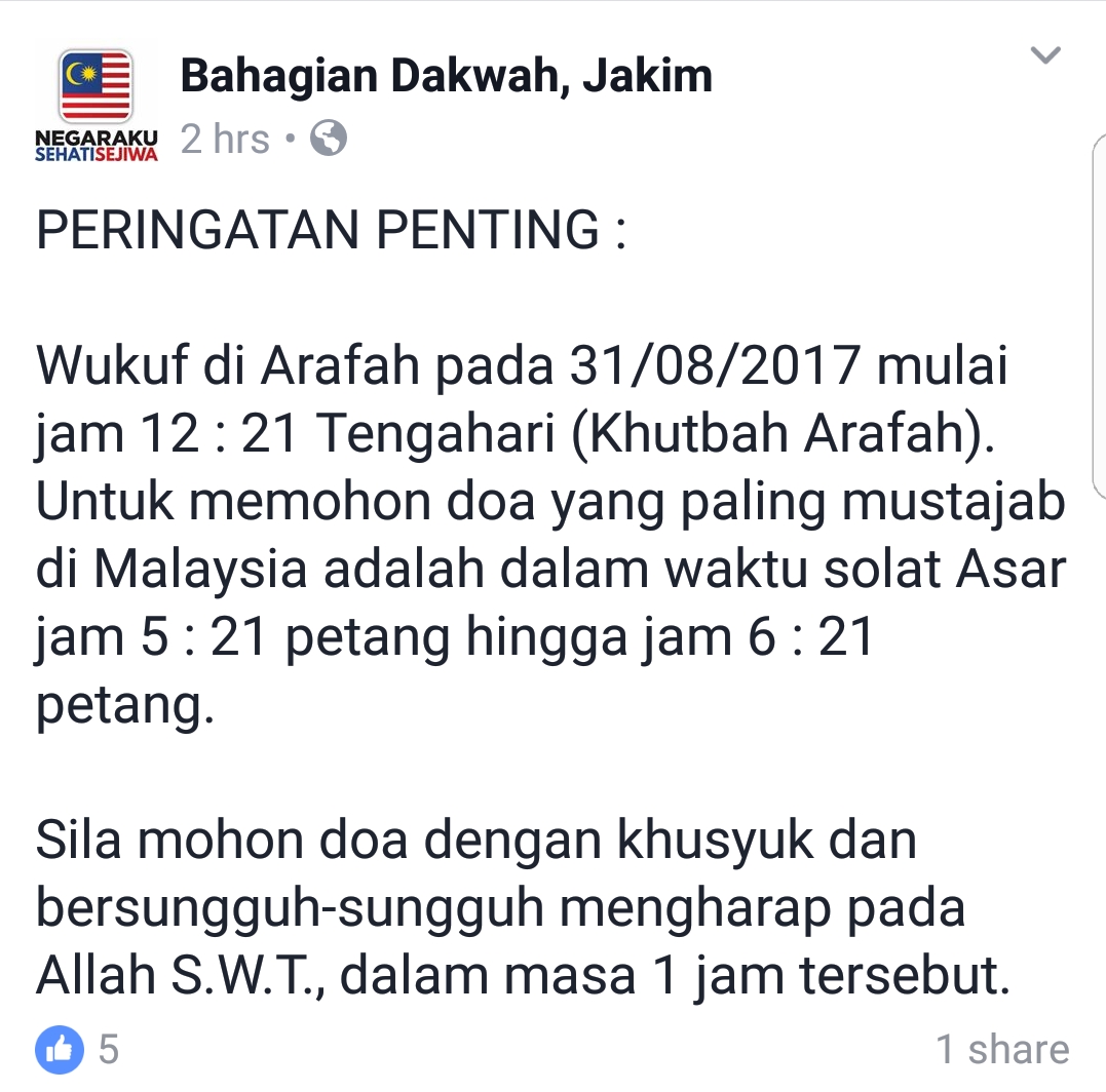 Waktu Berdoa Hari Arafah Kisah Zakat Malaysia Facebook