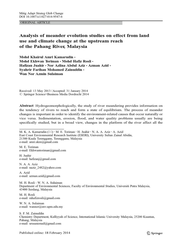 Analysisofmeanderevolutionstudiesoneffectfromlanduseandclimatechangeattheupstreamreachofthepahangrivermalaysia Pdf River Landscape