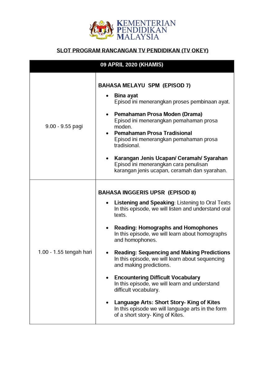 Kpm On Twitter Susunan Jadual Program Rancangan Tv Pendidikan Tv Okey 8 April Dan 9 April 2020 Ia Juga Boleh Ditonton Menerusi Saluran 110 Myfreeview Tv Saluran 146 Di Astro Dan Astro