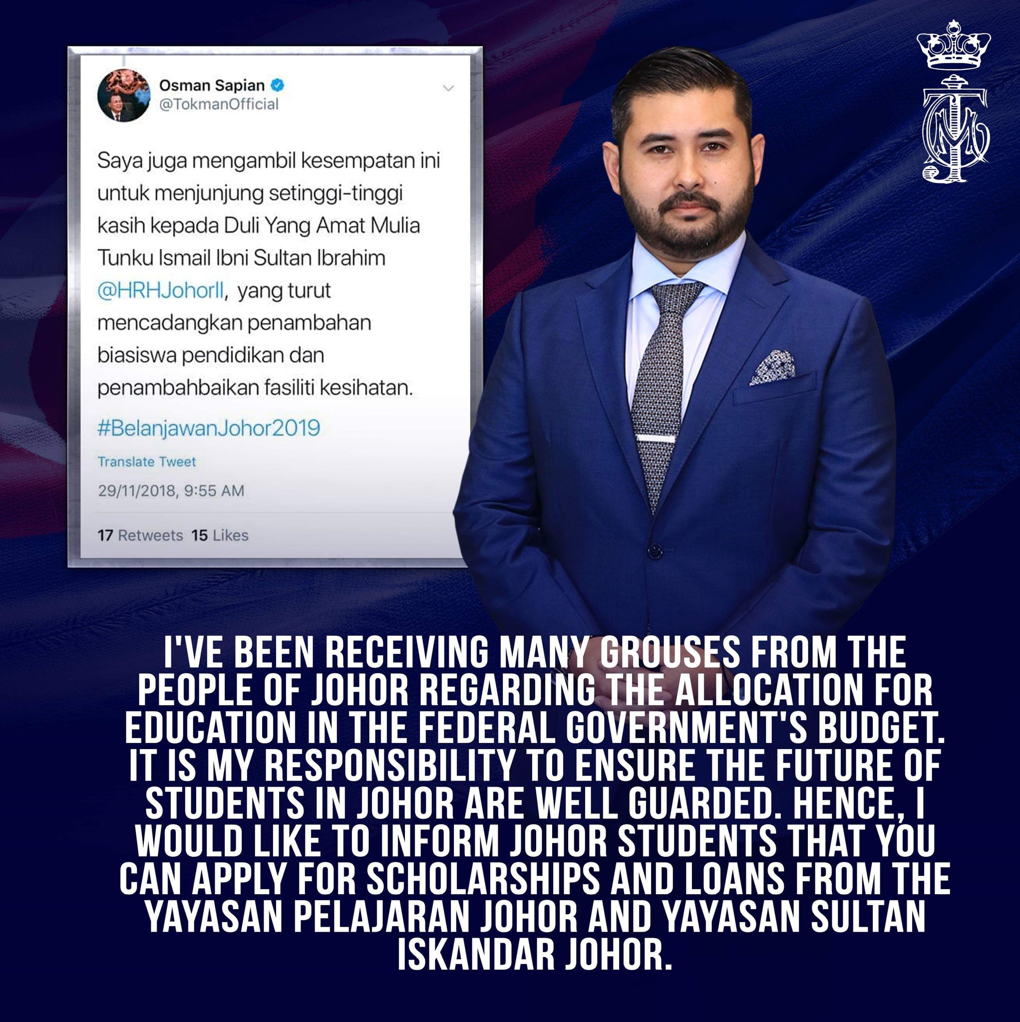 Hrh Crown Prince Of Johor On Twitter I Ve Been Receiving Many Grouses From The People Of Johor Regarding The Allocation For Education In The Federal Government S Budget It Is My Responsibility To