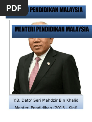 Dato seri diraja mahdzir bin khalid telah dilantik sebagai menteri pendidikan malaysia dalam barisan kabinet datuk seri najib razak rombakan kabinet 2015 menggantikan tan sri muhyiddin yassin.