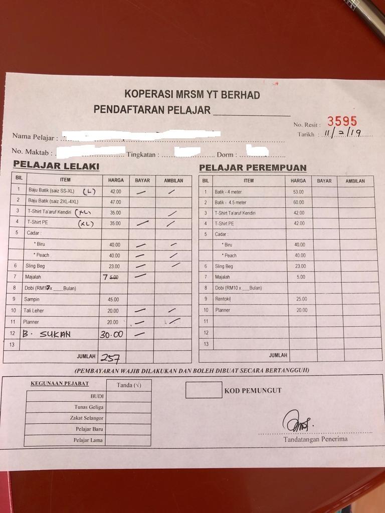 Kos Yuran Masuk Ke Tingkatan 1 Sekolah Berasrama Penuh
