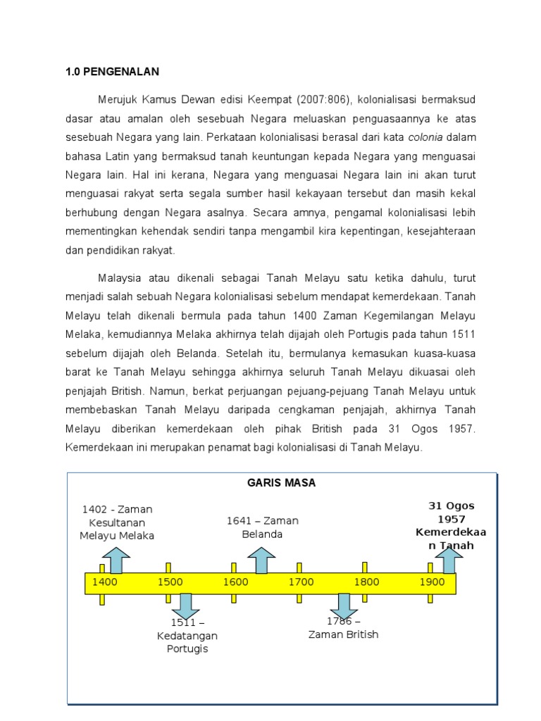 1 0 Pengenalan 1402 Zaman Kesultanan Melayu Melaka 1641 Zaman Belanda
