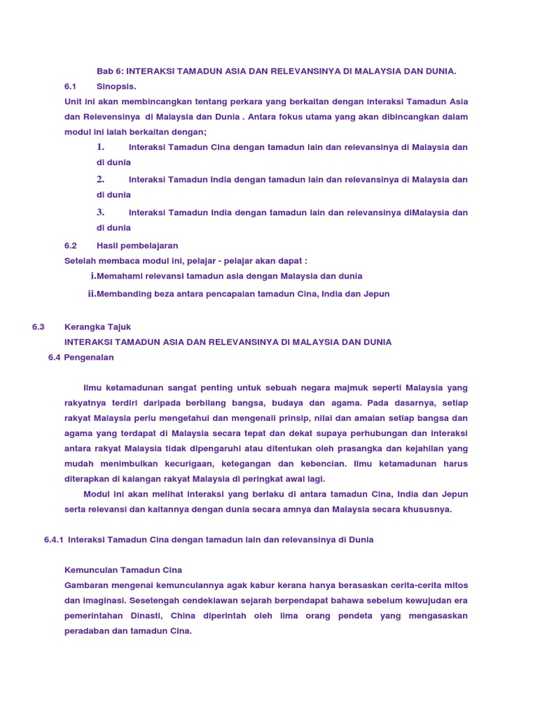 Topic 6 Interaksi Tamadun Asia Dan Ya Di Malaysia Dan Dunia