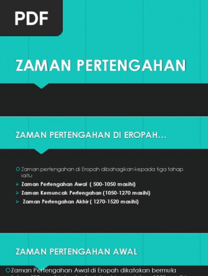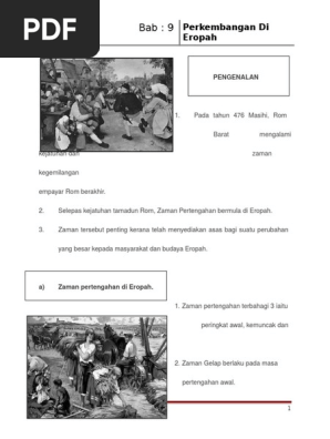 Bincangkan perubahan yang berlaku di eropah bermula daripada zaman gelap sehingga tercetusnya zaman renaissance dan hubungkaitkan dengan kegemilangan negara kita malaysia. Sistem feudal yang diamalkan pada awal zaman pertengahan di eropah mempunyai persamaan dengan sistem feudal yang diamalkan dalam masyarakat melayu tradisional. Zaman pertengahan ini telah membawa perubahan yang besar kepada masyarakat dan budaya eropah serta dunia amnya. Dianggap sebagai awal periode sejarah ini sedang masa renaisans dianggap sebagai akhirnya.